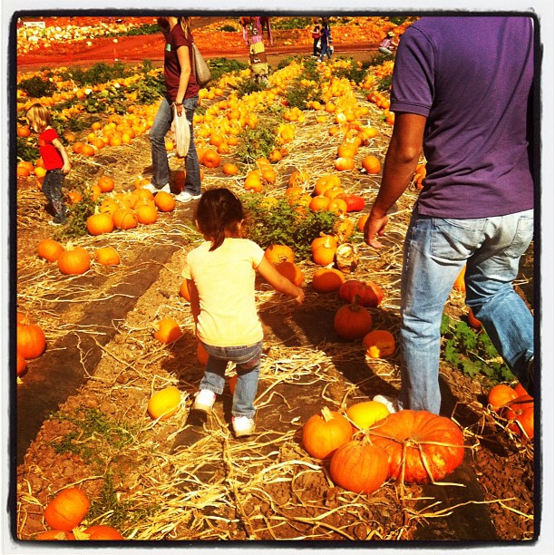 Rinnah picking out a pumpkin for Halloween! ππππ:)) (Taken with Instagram at Tanaka Farms)