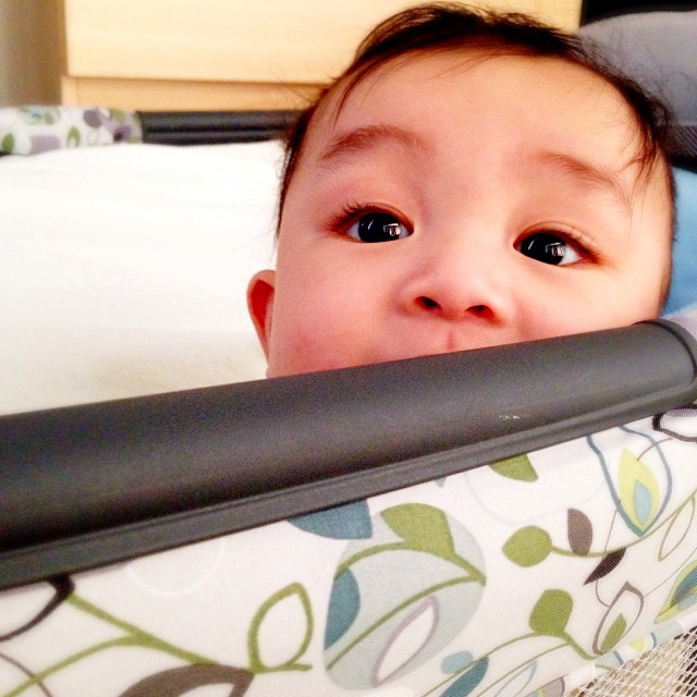 10.16.13 | Leafy {Look who’s peeking out of his leafy crib} πππβ€οΈβ€οΈβ€οΈ #fmsphotoaday #kurayzeeproject #leafy #babyboy #crib #iphoneonly #october2013 #photoaday