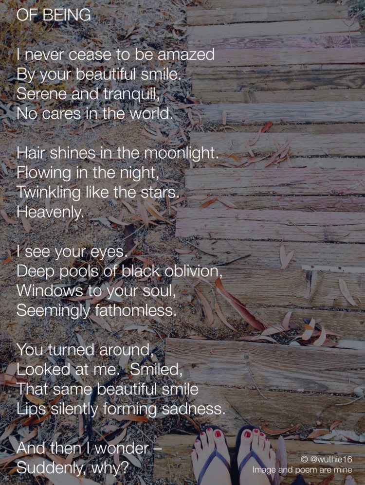 I wrote this poem originally way back in 2007. Almost a decade ago. You could search for it here in my blog if you’re curious about it. It went through a recent proofreading made by a good friend of mine, Jess – who for me is the goddess of poetry. ☺️